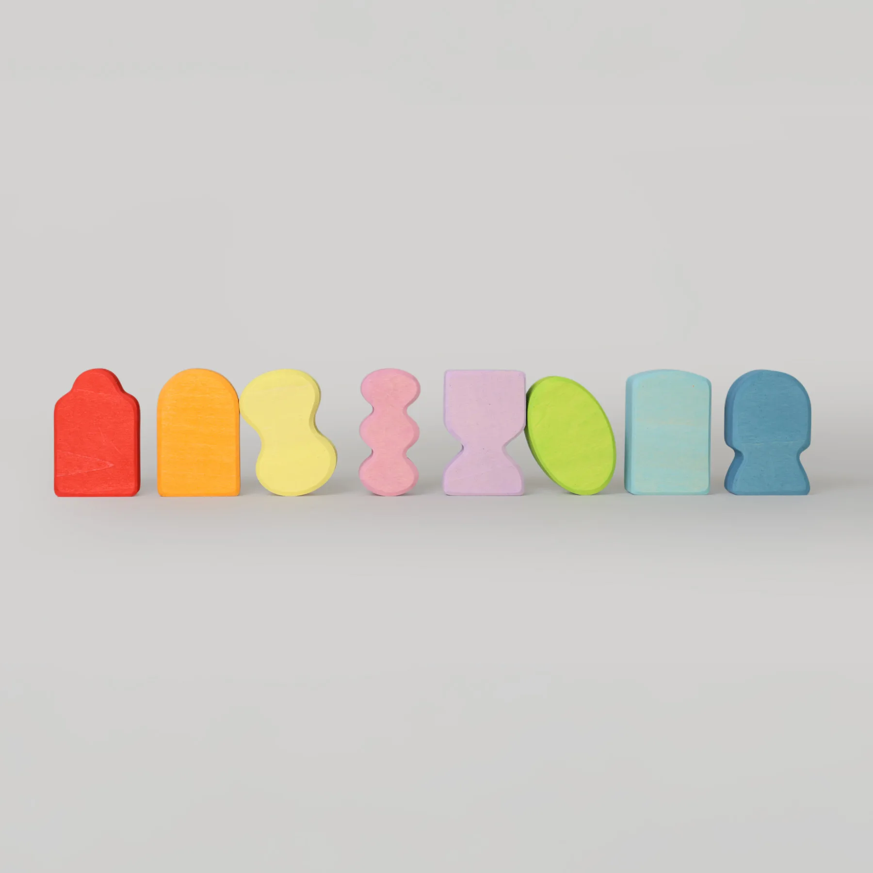 Design & systeem; Al het speelgoed van Grimm’s laat ruimte voor de fantasie, maar ook alles kan met alles gecombineerd worden. Dit resulteert in ontelbare mogelijke combinaties bij het bouwen en spelen.