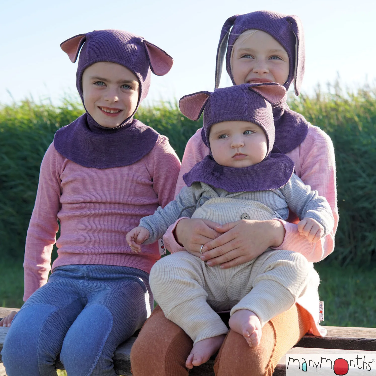 ManyMonths Natural Woollies Elephant Hood, Bivakmuts, Dusty Grape