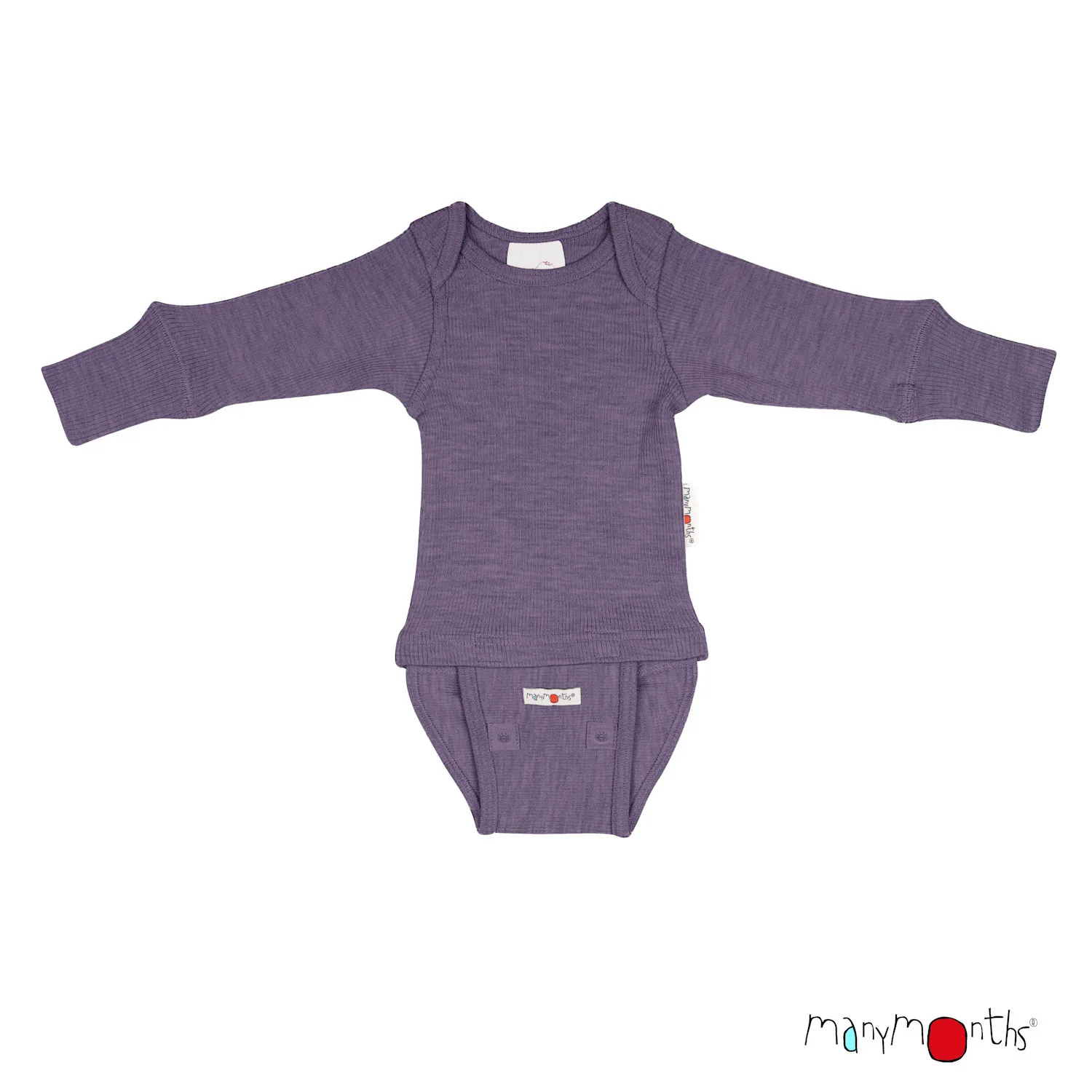 ManyMonths Natural Woollies, Romper Lange Mouw, Dusty Grape