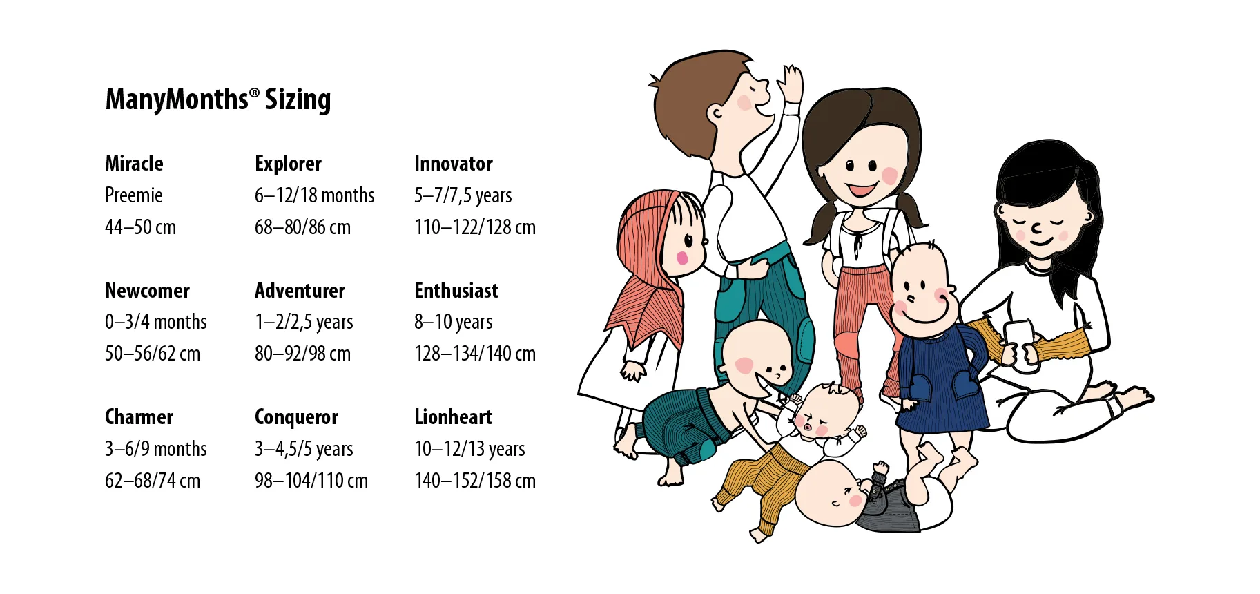 – NewComer (0-3/4 maanden, 50-56/62 cm)